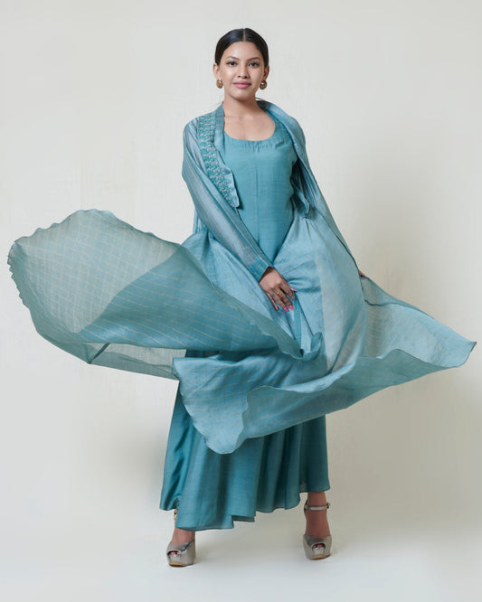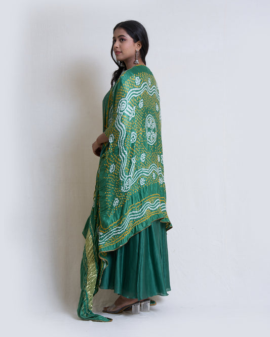 Green Kalidar with Gajji Silk Bandhni Cape