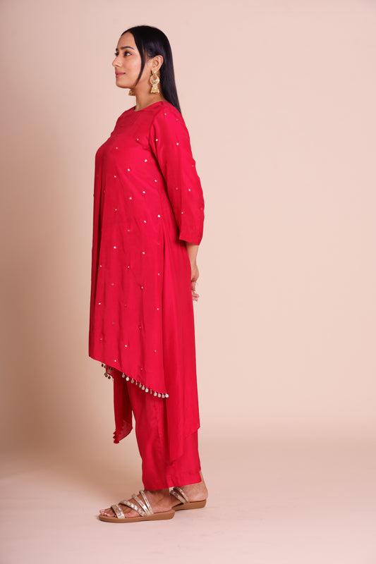 Sindoori Red Muslin Kurta Set