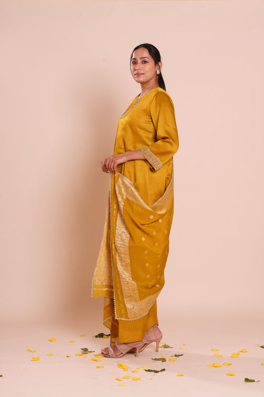 Yellow Muslin Kurta Set