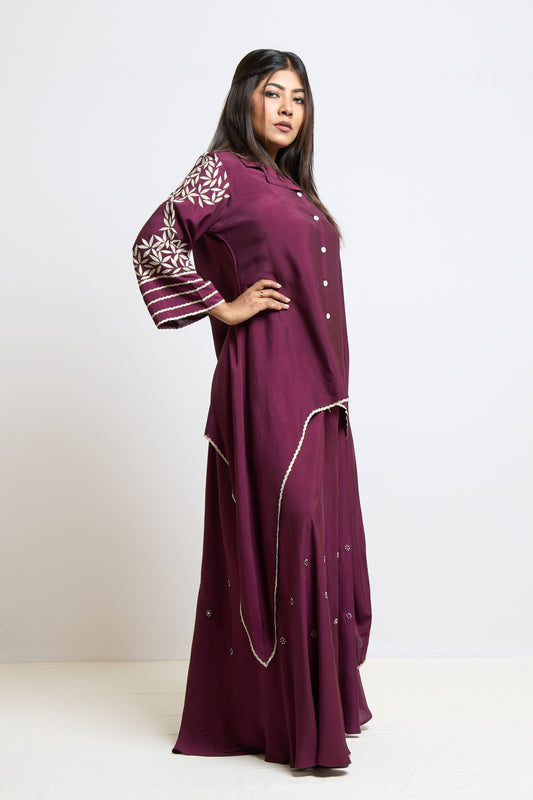 Indigo Blue and Maroon Kurta Set