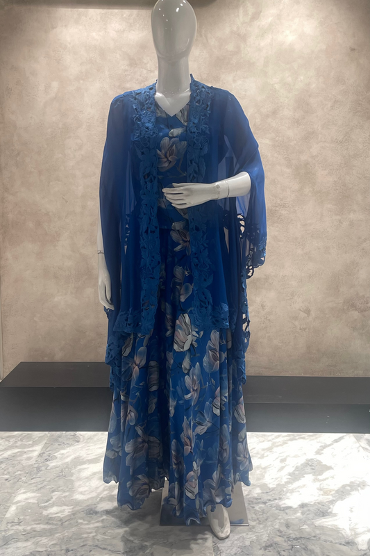 SaleFloral Blue Cape Set