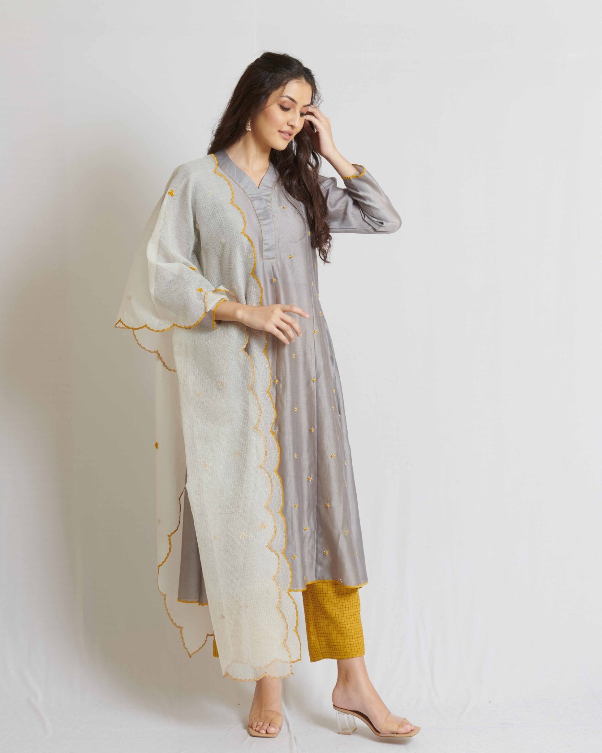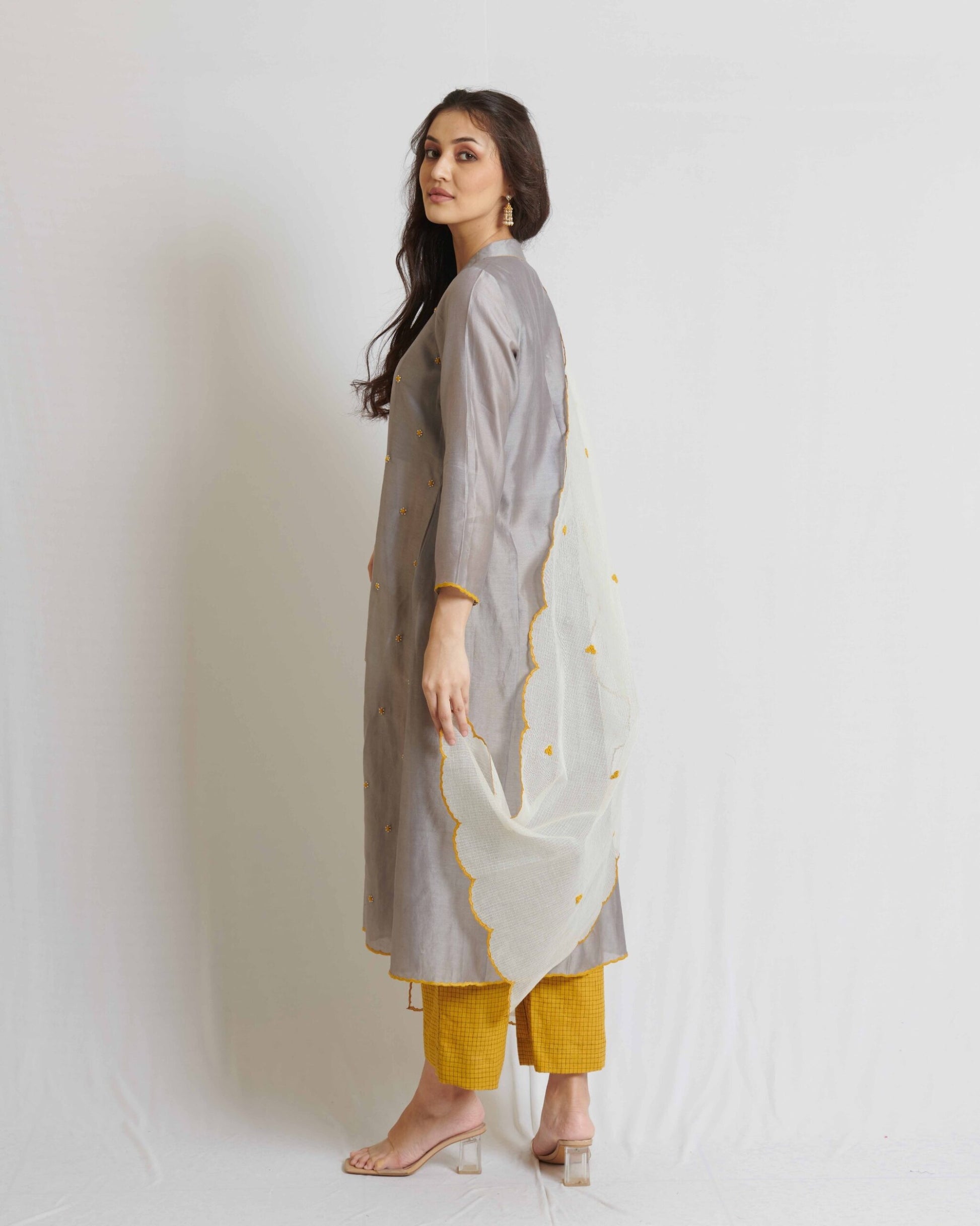 Steel Grey Chanderi Kurta Set