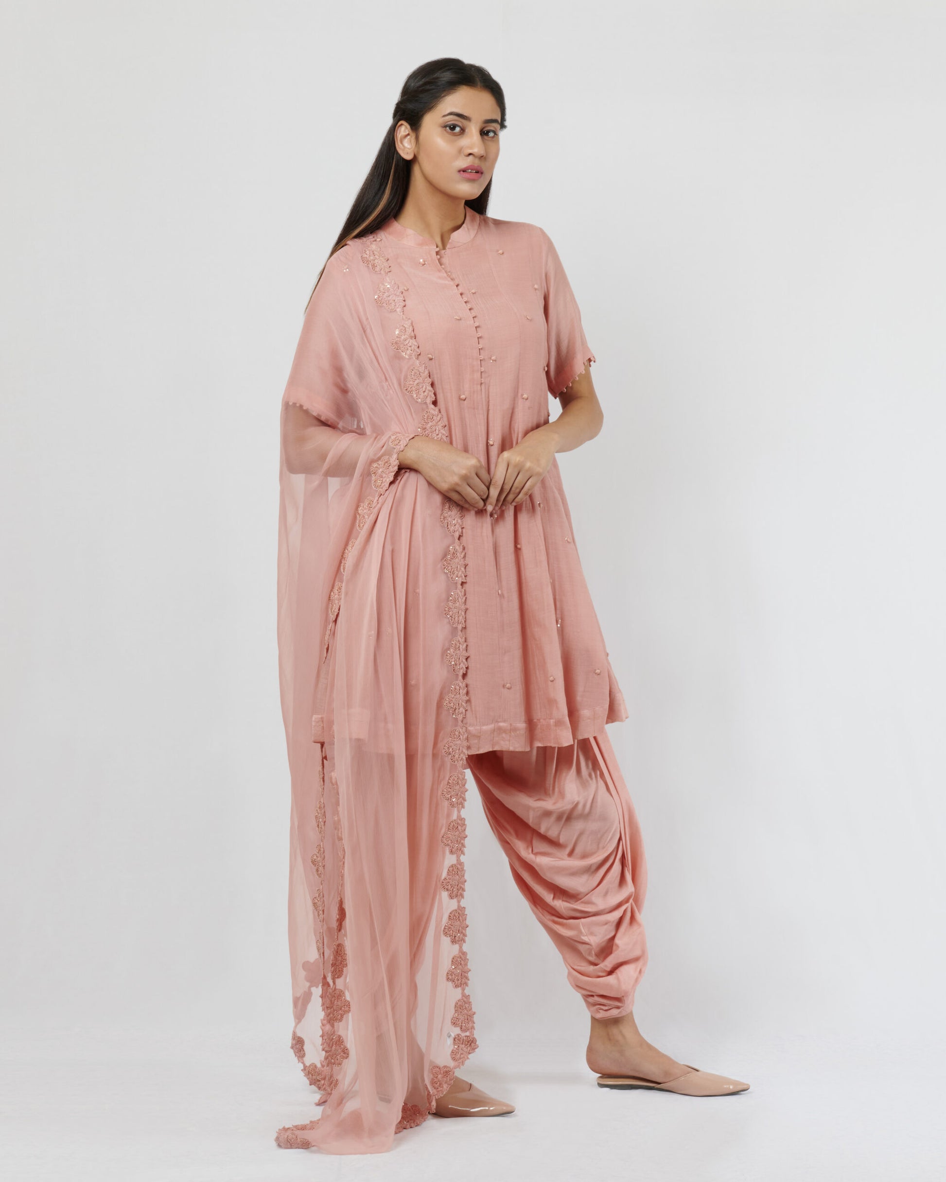 Vintage Pink Kurta Dhoti Set with Dupatta
