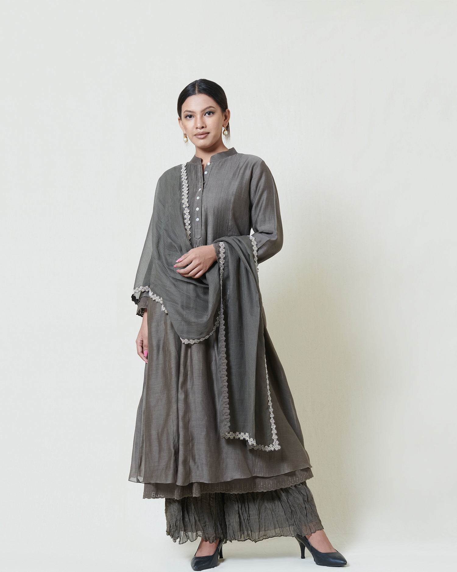 Fabric: Top: Kora chanderi Bottom: Kota cotton Dupatta: Kota cotton